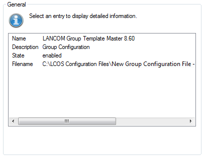 The Information page shows the name, status, and the file name of the group configuration.