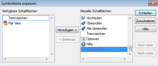 - Opens up a dialog enabling the displayed icons to be selected. A separator can be inserted between groups of icons. The order of the icons can also be changed.