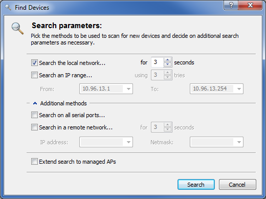 Select where you wish to search for devices: