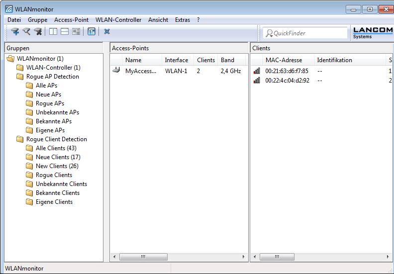 If no access point has been selected or if the respective access point has no clients, LANmonitor instead displays all existing clients.