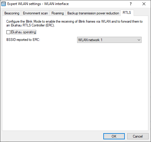 - Here you select the logical WLAN interface that the device reports to the ERC. The ERC "maps” this BSSID to a particular location. For example, if this location were a server room, the ERC knows that Wi‑ Fi tag "A” is located in the server room as long as the "blink” arrives from the BSSID belonging to the corresponding APs.