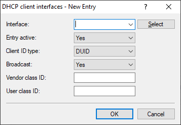 You can configure the client interfaces of the DHCP client for IPv4 under IPv4 > DHCPv4 > DHCP client > DHCP client interfaces.