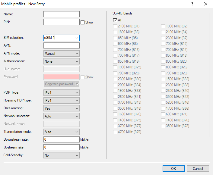 - eSIM-1: embedded eSIM in the device. The currently active profile configured in WEBconfig is used.