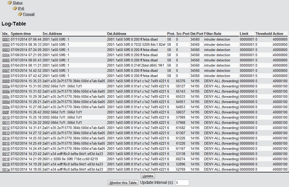 - Idx.: Sequential index. Furthermore, the table can also be checked via SNMP.