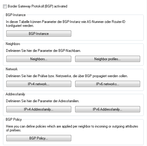To activate the BGP function, set a check mark for Border Gateway Protocol (BGP) active.