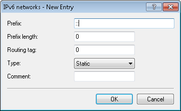 Note: The route is the default route for this address family if this entry contains the default setting 0.