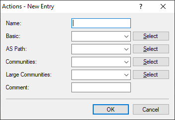 Contains the name of an override of large-community entries in the NLRI. This entry refers to the entries in the override table under Large Communities (Overrides list).