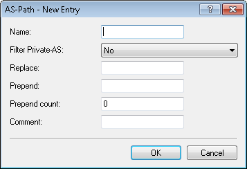 - If configured, this entry causes the device to prepend the AS_PATH attribute of the NLRI with the value entered here as often as is specified under "Prepend count". Special values: