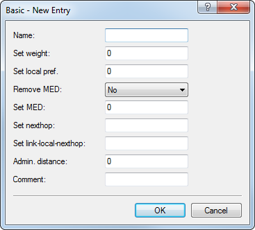 - If set to "Yes", the device deletes the multi-exit discriminator (MED) of an NLRI before it processes the setting under "Set MED".