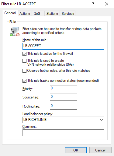 Create a new firewall rule that accepts all traffic and that has the value "LB-RICHTLINIE" as the load balancer policy.