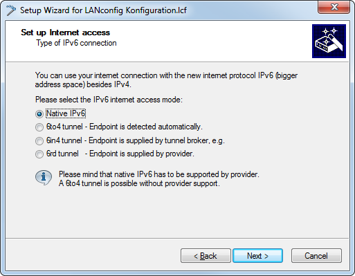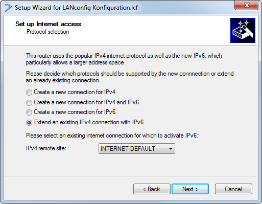 | Setting up IPv6 Internet access / IPv6 access using the Setup Wizard in LANconfig | |