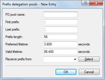 Note: If you use a prefix from a WAN interface for dynamic address formation, the values Preferred lifetime and Valid lifetime are unavailable. In this case, the device automatically determines the values that apply to the prefix delegated by the provider.