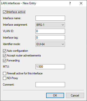- Enter a name for the logical IPv6 interface which is to apply to the physical interface (interface assignment) and the VLAN ID.