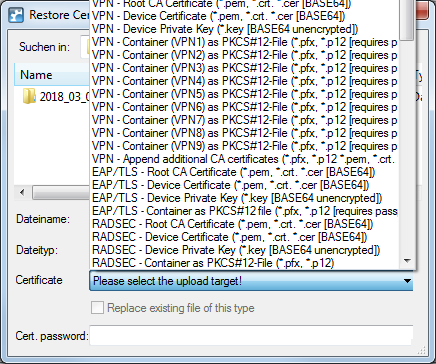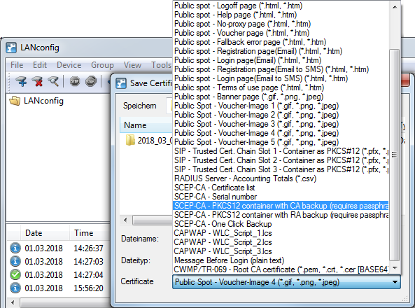 Certificates are stored and uploaded with LANconfig as follows: