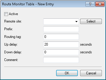 To activate the route monitor, switch to the view Communication > Backup and check the option Route monitor active.