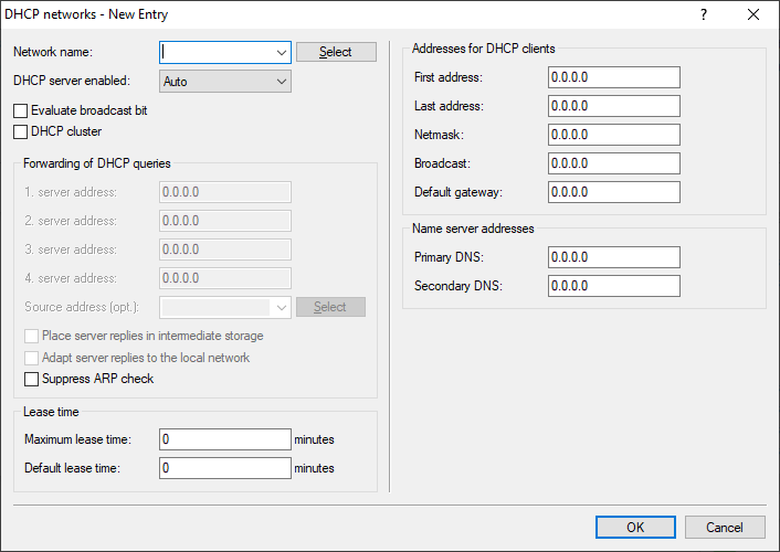 Select here whether the DHCP server should evaluate the broadcast bit reported by the client. If the bit is not evaluated, all DHCP responses are sent as broadcasts.