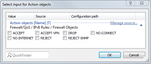 If you make a new entry here, it initially appears under Unknown source. Next, highlight the entry for a source that you want to assign to the new entry, and click on Manage source. Set the values for this entry, and save the new object. The new entry now appears as a new object in the list of the corresponding source.