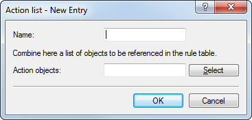 Using the Action list button, you can collect actions into groups. The actions available here must first be defined using Action objects.