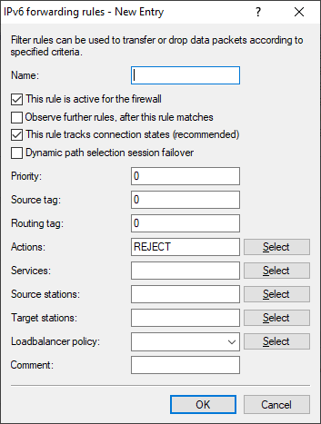 - Enter an interface or routing tag here (tag context) if you want the rule to apply only to packets marked in this way. The default value of 0 means that this rule applies to all packets regardless of the interface or routing tag. Note: If only packets with the interface or routing tag 0 are to be considered, then 65535 must be specified here.