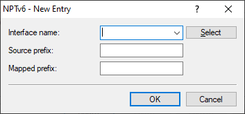 - Name of the network or the peer on which NPTv6 is to be performed. If a prefix is to be mapped for a dynamic provider prefix, the name of the Internet connection or peer has to be configured here, e.g. INTERNET.