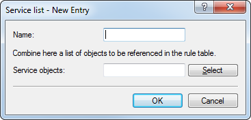Using the Service list button, you can collect services into groups. You first define the services under TCP/UDP service objects, ICMP service objects and IP protocol objects.
