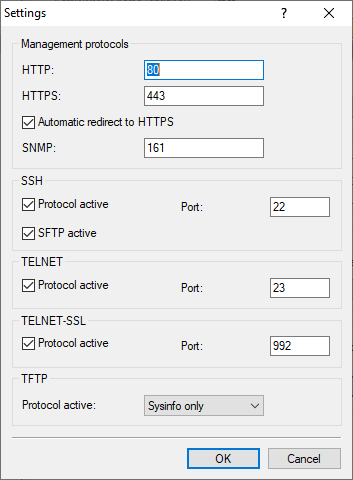 The management protocols allow you to define the protocols and their ports that should always be active for the configuration. In LANconfig, these settings are located under . You can also set which protocols should be used on certain interfaces. Further details are available under Restricting access to the configuration.