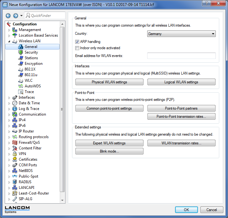 If you are looking for a particular value or term in LANconfig or in the configuration, QuickFinder quickly displays all of the locations where the string occurs in the LANconfig dialogs.