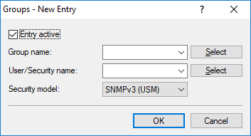 - Here you select a security name you assigned to an SNMP community. It is also possible to specify the name of an existing configured user.