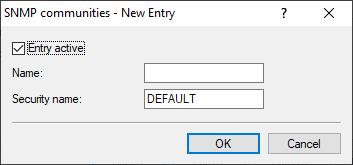 For SNMPv1 or SNMPv2c, you force the entry of login data for SNMP read-only access by disabling the public community in the list of the SNMP communities. This setting only allows information about the state of the device, current connections, reports, etc., to be read out via SNMP after the user authenticates at the device. Authorization can be conducted either with the administrator-account access credentials or an access account created for the individual SNMP community.