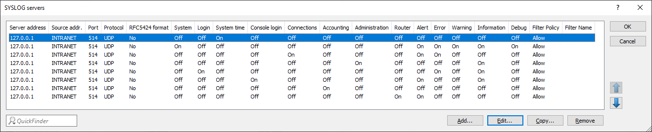 Click on SYSLOG servers to see the entries available for SYSLOG.