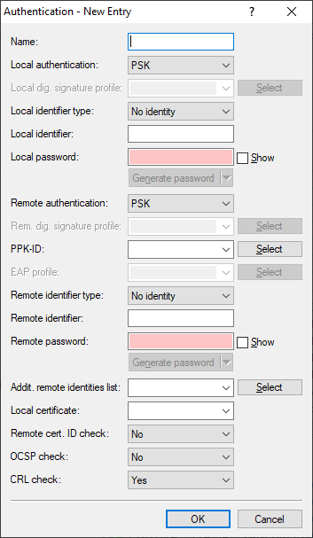- ASN.1 Distinguished Name: The device expects a distinguished name as a remote ID (e.g. "CN=client01.example.com,O=test,C=DE").