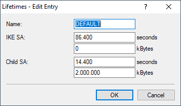 - Contains the time in seconds and/or the data volume in kilobytes until the CHILD SA key is renewed.