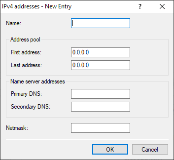 Note: The address pool specified here should be outside the defined networks. Otherwise, you have to enable proxy ARP.- Name server addresses