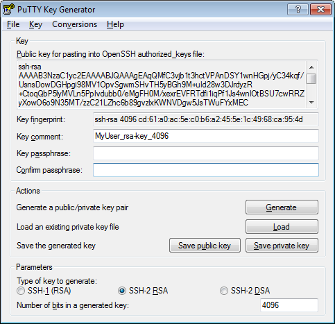 The first thing you need for SSH authentication using a public key is a personal key pair. This tutorial describes how to use PuTTYgen to create an RSA key pair consisting of a public key and a private key.