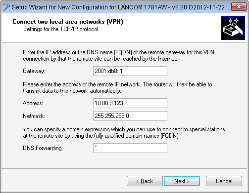 The Setup Wizard option "Connect two local area networks" helps you to set up a VPN connection.