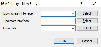 - Name of the group filter that is to apply to this proxy. References the table IPv4 filter lists under . By default, the filter entry is blank or points to the filter list "ANY", which allows all multicast groups. The group filter can be used to restrict the multicast groups available for clients.