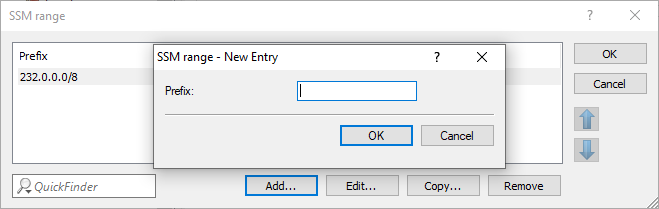 - Specifies the IP address range in prefix notation used for SSM.