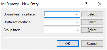 - Interface name used by MLD clients to join groups and receive MLD messages from the proxy. Possible values are IPv6 networks, e.g. INTRANET, IPv6 (WAN) remotes or RAS templates. For provider-based IPTV scenarios, the local network, e.g. INTRANET, must be configured here.