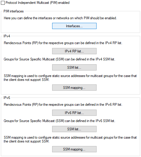 - Enables or disables PIM on the device.