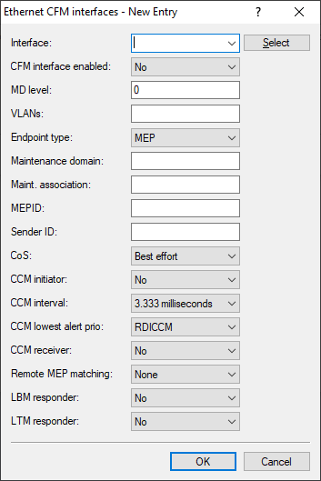 Specifies the interface where CFM should be enabled. Possible values are LAN interfaces like LAN-1 or WAN interfaces like DSL-1.