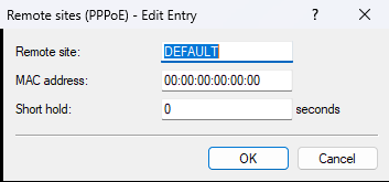 1. Leave the name of the Remote site as "DEFAULT". This entry is used for all PPPoE clients that are to be authenticated via RADIUS.