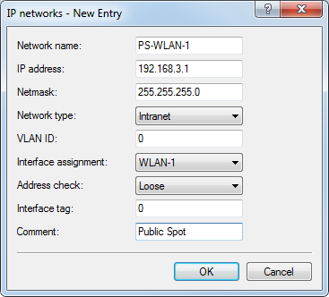 The following configuration steps show you how to manually setup a Public Spot for simple scenarios. For the application scenario described here, you enable the Public Spot on an interface over which there is no other data traffic other than the Public Spot traffic – where Public Spot and normal WLAN users do not share the same network (dedicated SSID).