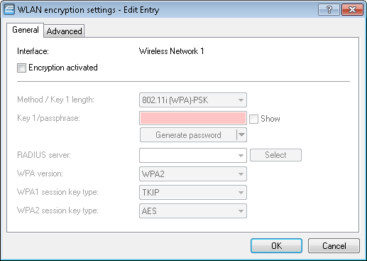 Encryption for all logical WLANs is enabled by default. In Public Spot applications, the payload data between the WLAN clients and the access point are usually transmitted unencrypted. For this reason, go to Wireless LAN > Encryption > WLAN encryption settings and disable encryption for the logical WLAN which you previously set up for the Public Spot login.