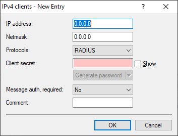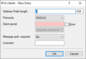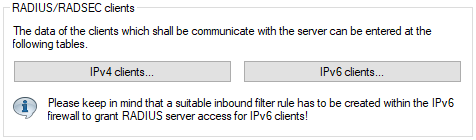 Note: In order for IPv6 clients to access the RADIUS server, a corresponding inbound rule must be entered in the IPv6 firewall, if necessary.