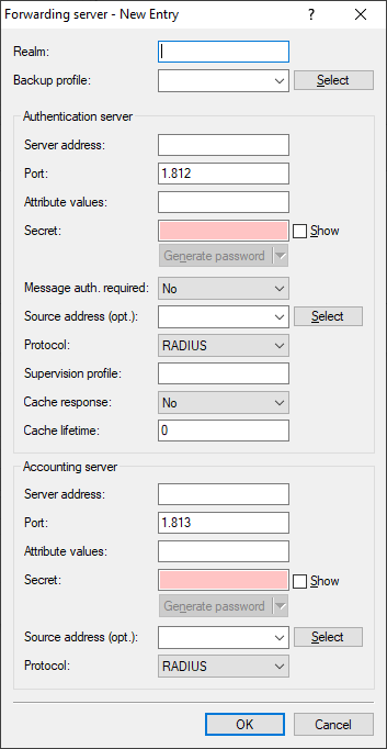 If no forwarding is required for the access management or accounting, leave the corresponding address field empty.