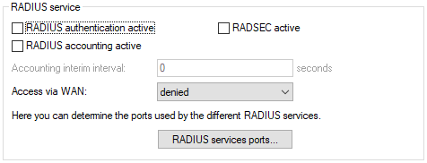 Here you specify how the RADIUS server can be accessed from the WAN.