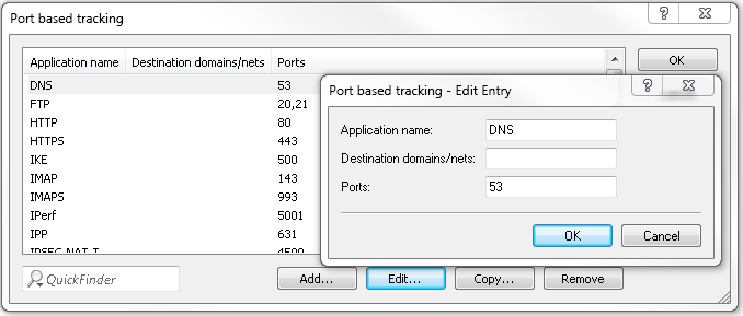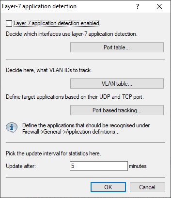 - Here you specify the ports that are to be tracked by layer-7 application detection. Enable or disable the available ports correspondingly.