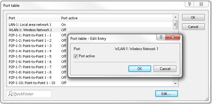 - Port table