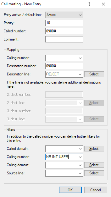 You have the option to block certain call numbers (e.g. charged hotlines such as 0900) with the following call route: