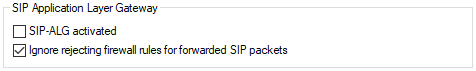 - Here you determine whether the firewall for SIP packets respects Reject rules or whether the packets are forwarded by the SIP ALG in any case.